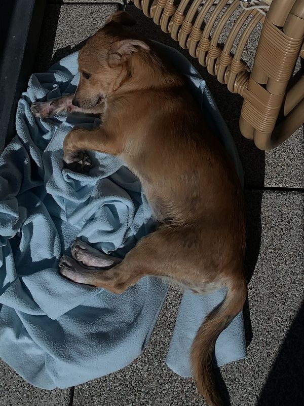 Irma wurde ganz alleine auf der Straße gefunden. Unsere Tierschützerin wurde informiert, und sie nahm Irma mit. Sie brachte die kleine Maus zum Tierarzt. Nachden sie untersucht und zwei Mal geimpft war, nahm die Tierschützerin Irma mit nach Hause. Dort hat sie die ganz kleinen Welpen, die noch viel Pflege benötigen.