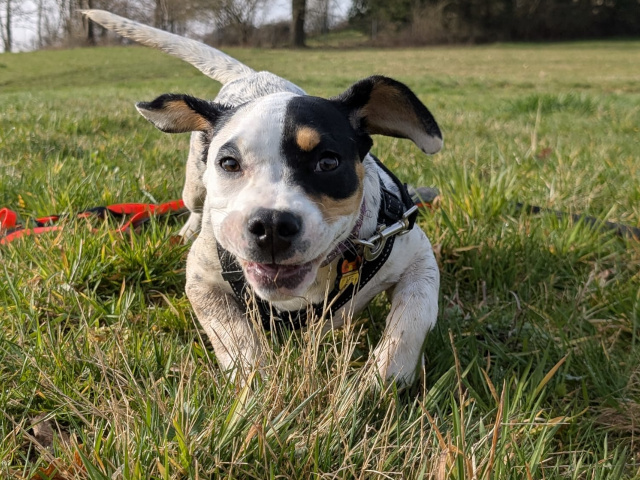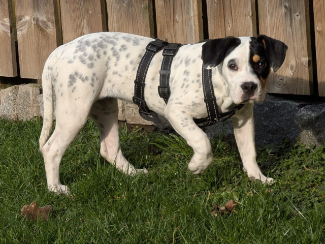 Ivy wird an die Leinenführigkeit gewöhnt, was sie schon richtig gut macht und lernt so nach und nach ihre Umgebung kennen. Fremde Menschen und laute Geräusche findet sie noch etwas gruselig, aber auch daran gewöhnt sie sich mehr und mehr.