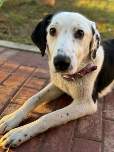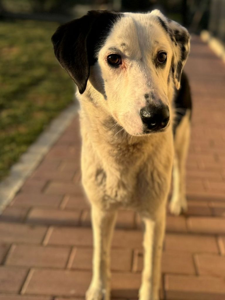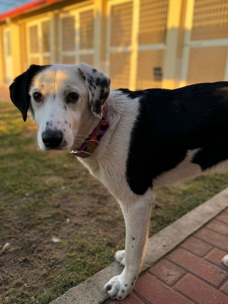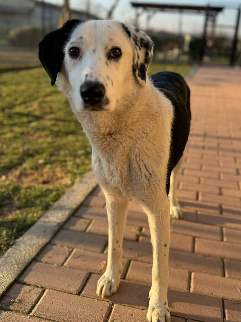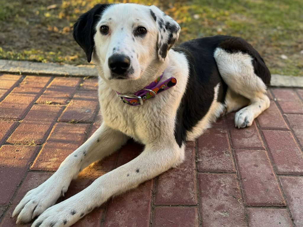 Sie liebt Menschen über alles und sucht stets ihre Nähe – ein echter Kuschelhund mit klarem, aufmerksamen Blick! Durch ihre besondere Fellzeichnung ist sie ein echter Blickfang.