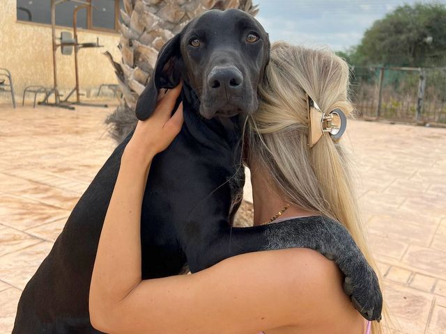 Jet ist ein großer schwarzer junger Hund und wir hoffen, dass die Farbe nicht das ist, was die Leute zurückschrecken lässt, denn schwarze Hunde sind wunderschön! Jet sieht nun richtig gut aus und hat ein sanftes und freundliches Wesen. Jet braucht einen kurzen Augenblick bei fremden Menschen. Jet wird einen sehr treuen Begleiter abgeben; er mag die Nähe zum Menschen. Die Leine kennt er noch nicht, stellt sich aber bei den Übungen gut an.