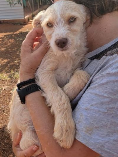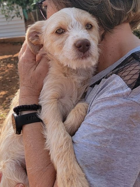 Jodie hat hell-beiges Fell und strahlend grüne Augen, die sie zu einer wahren Schönheit machen. Ihren Tag verbringt sie mit ausgiebigem Spiel, Herumtoben, Fressen und Neues zu entdecken. Wenn sie müde ist, kann alles als Schlafplatz dienen. Schön findet sie es auch, auf dem Schoß zu liegen und zu schlafen. Jodie ist ein ganz normaler Welpe und wird ihre Familie sicherlich gut beschäftigen ![]()