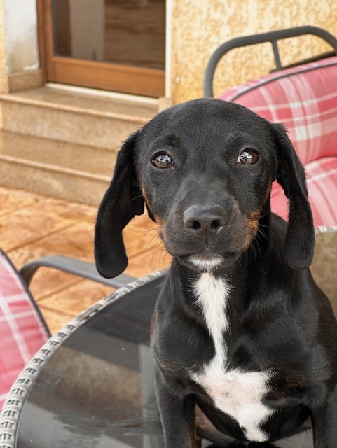 Die süße Kira ist ein unfassbar süßer Mischlings-Welpe und wurde Anfang Oktober 2024 geboren. Mit einer Schulterhöhe von 30 cm und einem Gewicht von 4,8 kg ist sie eine kleine, süße Seele, die sich mit ihrem bezaubernden schwarz-weißen Fell sofort ins Herz der Menschen schleicht. Ihre weiße Brust und die braun gesprenkelten Pfötchen verleihen ihr einen einzigartigen Charme - dazu noch diese süßen Schlapp-Ohren, die ihr ein besonders niedliches Aussehen verleihen.