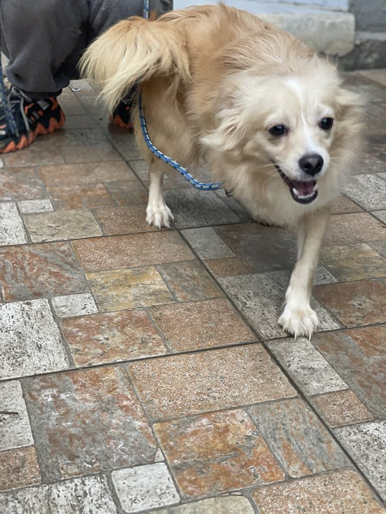 Die süße Klea ist eine bezaubernde Hündin, die im Mai 2024 geboren wurde. Mit ihrem flauschigen, beigen und weißen Fell und einer Größe von nur 35 cm ist sie eine kleine Schönheit, die das Herz jedes Menschen im Sturm erobert. Klea wurde vor einigen Monaten als Welpe mitten auf der Straße gefunden, und obwohl sie eine besondere Herausforderung in ihrem Leben hat, strahlt sie eine unbändige Lebensfreude aus.