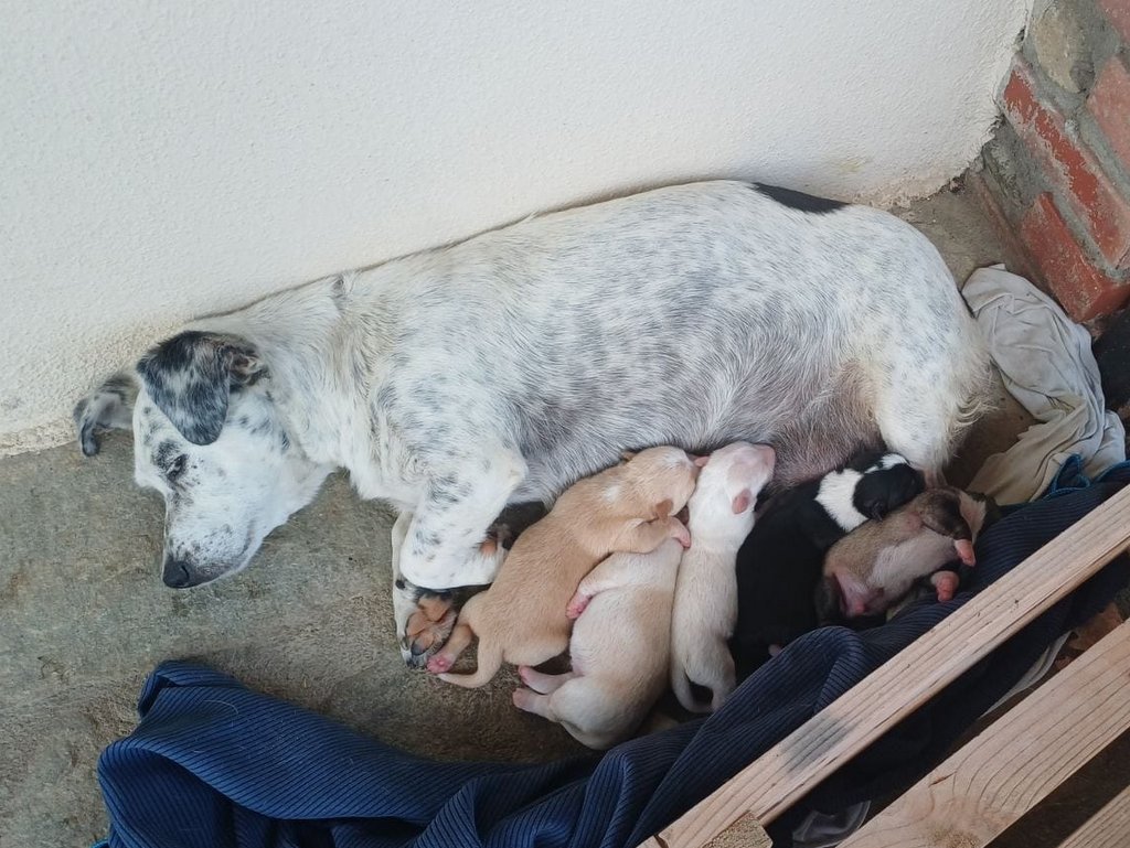 Lida ist eine sehr fürsorgliche und liebevolle Mama von fünf Welpen. Sie durfte ihre Babys im Shelter unserer Tierschützerin zur Welt bringen. Zoi nahm sowohl Lida als auch den Vater ihrer Welpen, Locky, in Sicherheit. Seitdem befindet sich die kleine Familie in ihrer Obhut und wird dort mit allem versorgt, was eine Hundemama braucht.