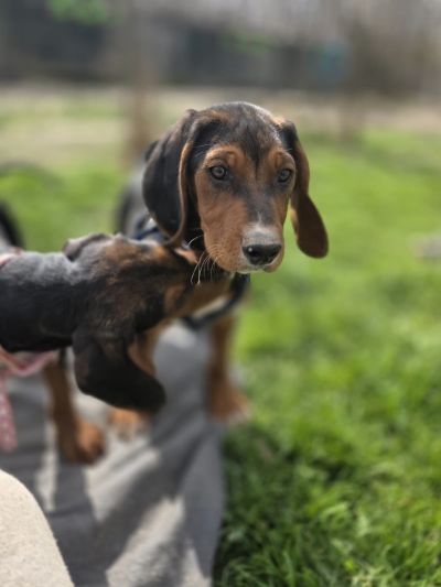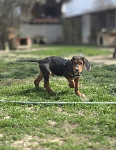 Lorenzos Mama zeigt durch ihr Aussehen, dass sie wohl zu den Jagdhunden gehört. Also sollte man auch bei dem Sohnemann mit einem Jagdtrieb rechnen.