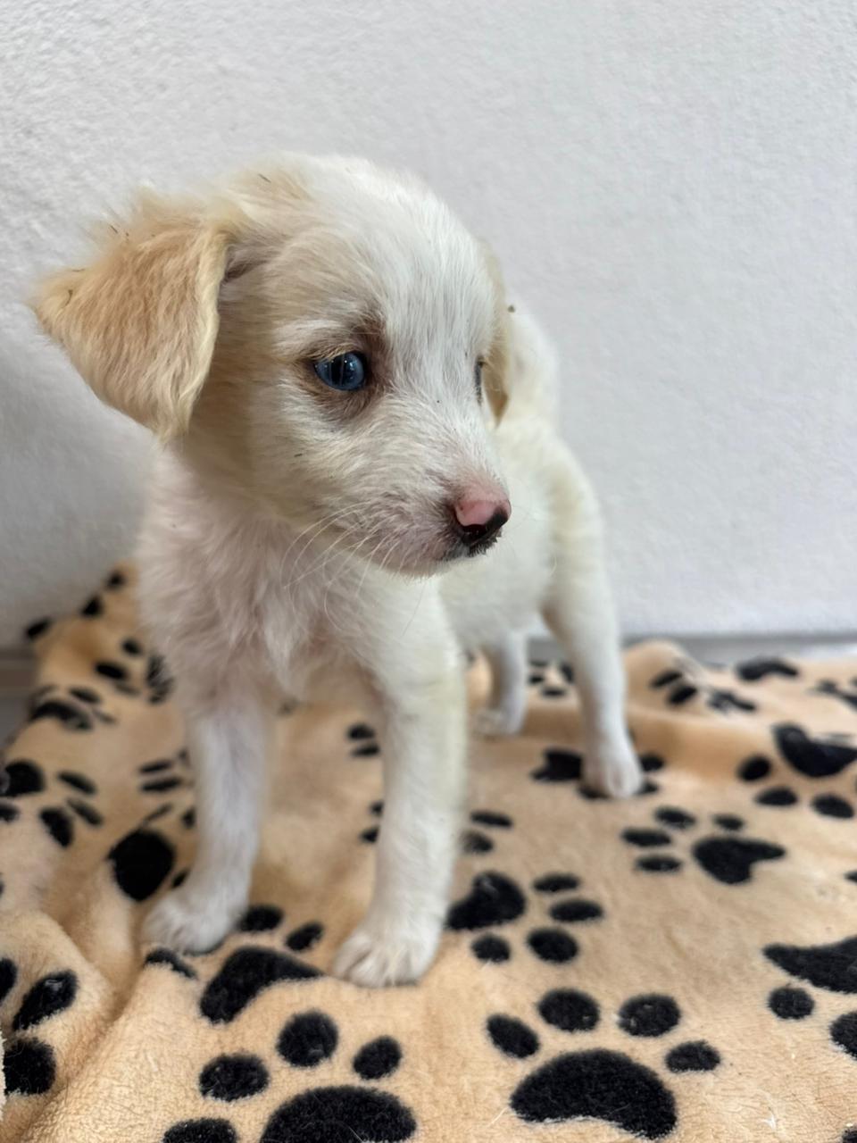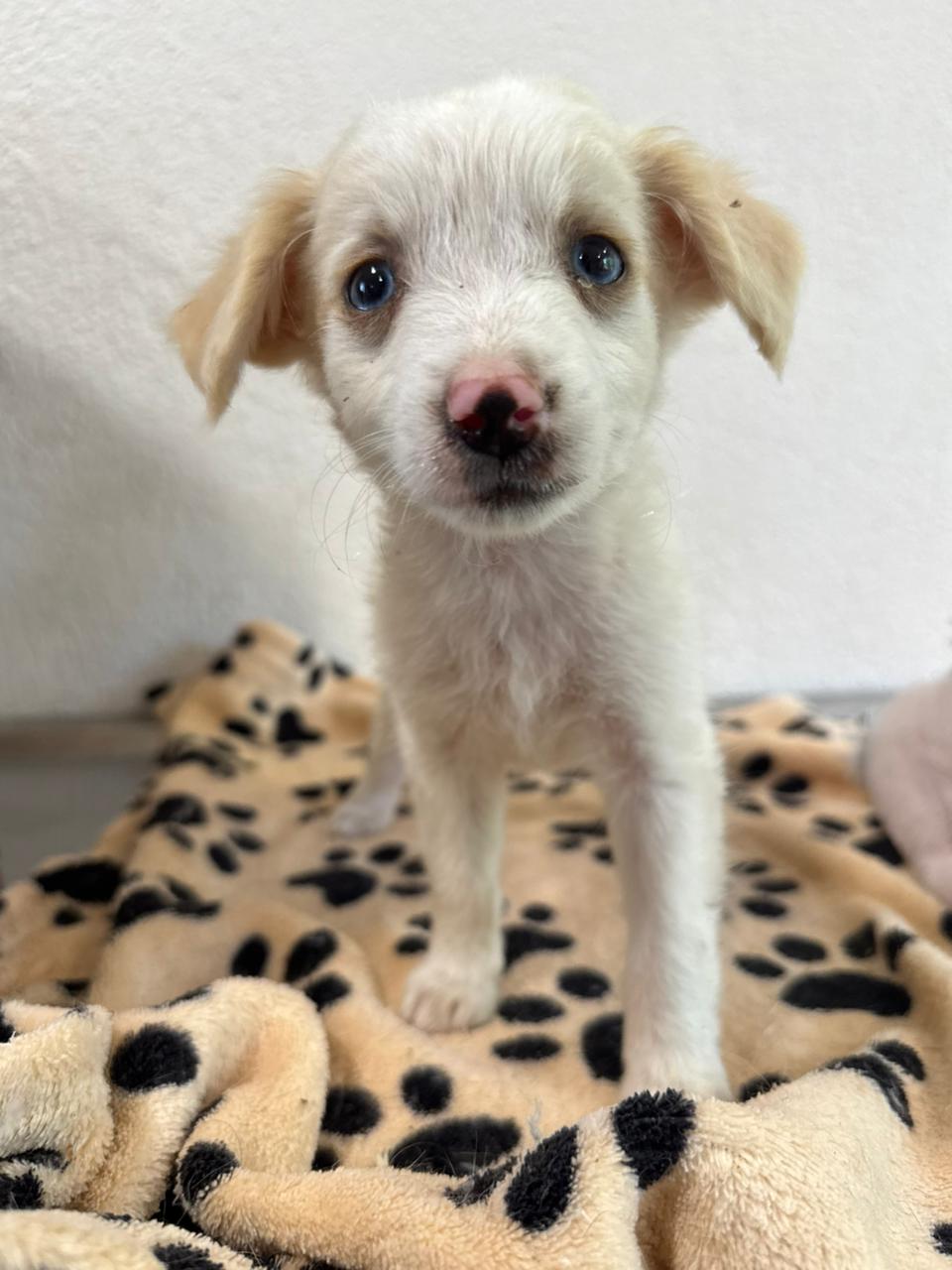 Alle Welpen haben unterschiedlich gefärbte Augen, Majas Augen sind blau mit attraktiven Sprenkeln. Ihr Näschen hat nicht ganz so viel Farbpigmente abbekommen, aber das tut ihrer Schönheit keinen Abbruch.