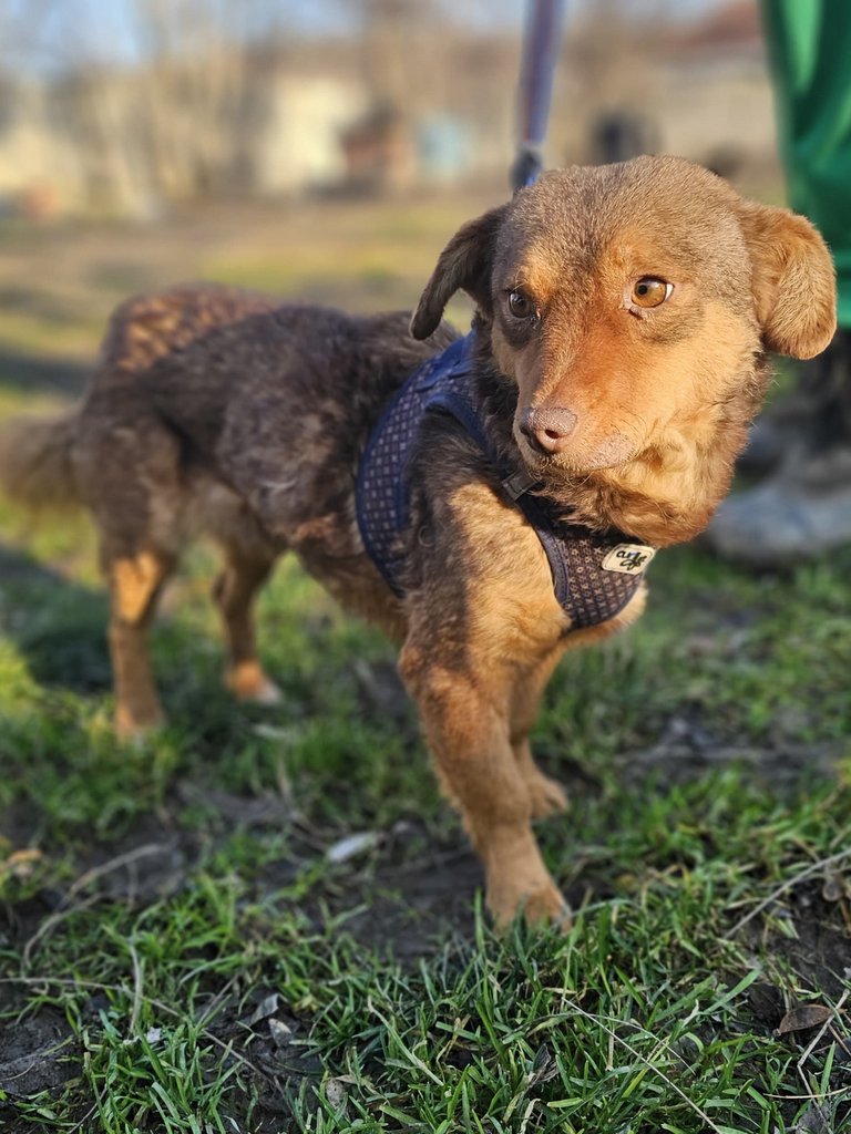 Eine tierliebe Frau fand vor zwei Jahren Mami und ihre Welpen in einem Karton. Deshalb nannte die Frau sie Mami, weil sie die Mama war. Sie nahm alle mit, und Mami lebte seitdem auf dem Gelände einer Baufirma. Die Welpen wurden adoptiert und Mami kastriert. Diese Frau nahm im Laufe der Jahre immer mehr Hunde bei sich auf, die sich jedoch nicht mit Mami verstanden. Sie griffen Mami an. Davon erfuhr unsere Tierschützerin und nahm Mami mit zu sich. Mami hatte Bisswunden an Beinen und Bauch.