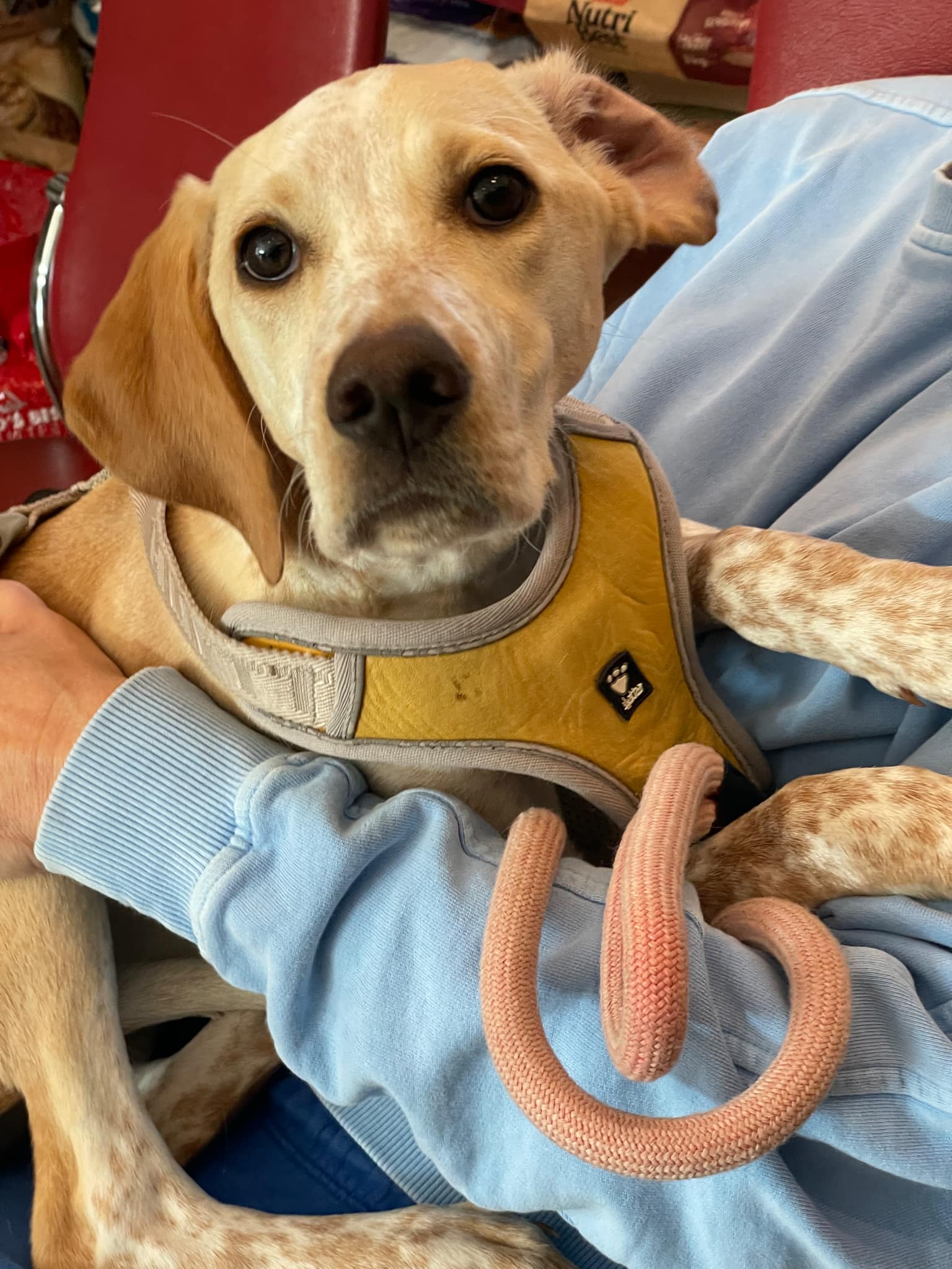 Melissa ist eine süße, sanfte Hündin und hatte so viel Glück, dass eine gute Familie sie gefunden hat und sie mit nach Hause nahm. Aber wie es so ist, haben sie bereits Hunde. Sie war nur ein paar Tage bei ihnen und ist auch noch untergewichtig.Aber sie ist fast stubenrein, geht an der Leine und fährt gut im Auto mit. Melissa ist freundlich mit den Familienhunden; sie wird ganz schnell ein super toller Haushund und Familienmitglied sein.