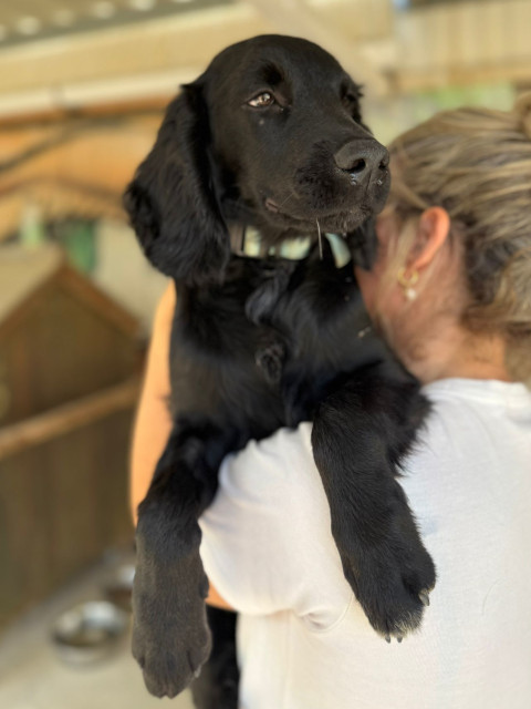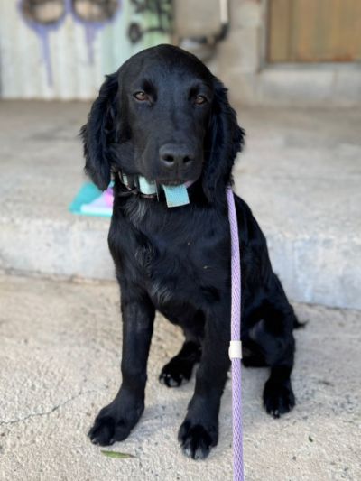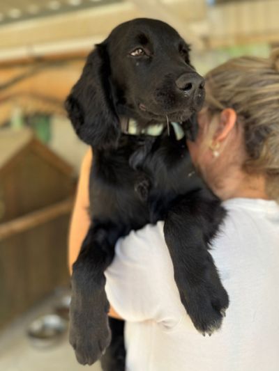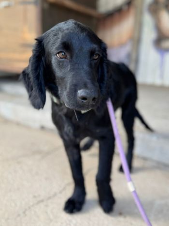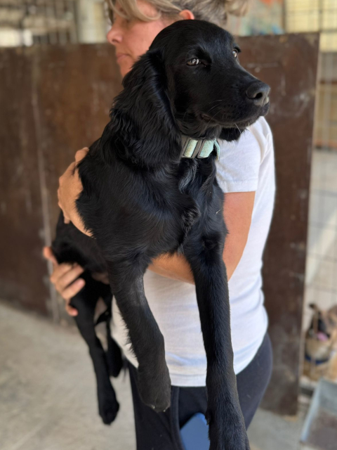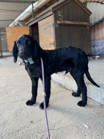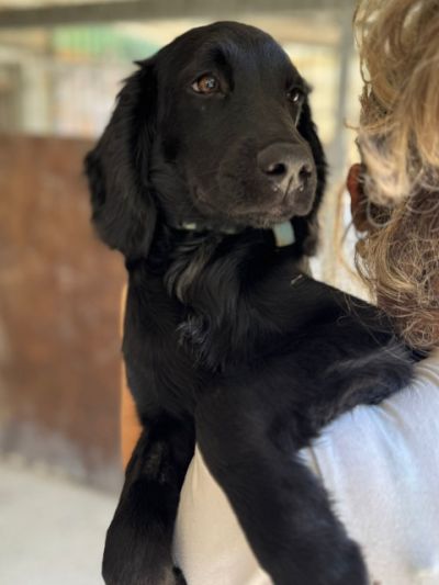 Mickey ist ein nicht zu großer Spaniel mit mittellangem Fell und wunderschönen Schlappohren. Er hat ein samtiges schwarzes Fell, ist sehr menschenfreundlich und mag besonders Kinder. Er scheint nicht zu wissen, wie man mit Spielzeug spielt, ist zurückhaltend und lernt gerade, mit einem Geschirr zu laufen. Mickey ist noch immer etwas traumatisiert von seiner Erfahrung, dass er mit ansehen musste, wie seine Mutter angebunden und ohne Futter sowie Wasser zurückgelassen wurde, bis sie starb. Er hängt sehr an Menschen, die ihm Liebe entgegenbringen.