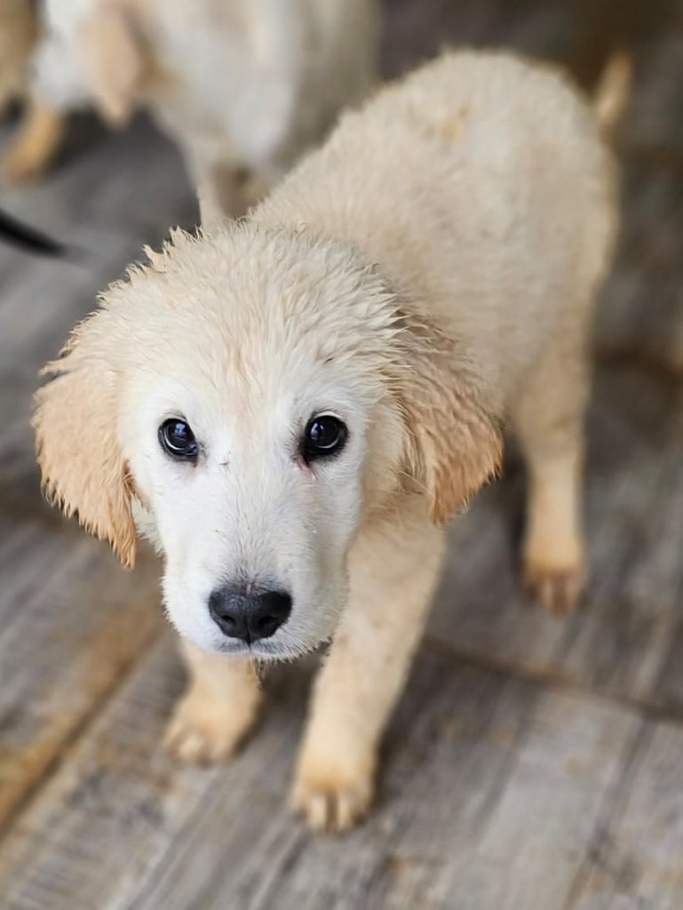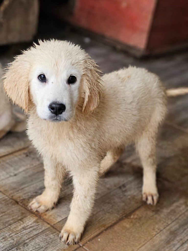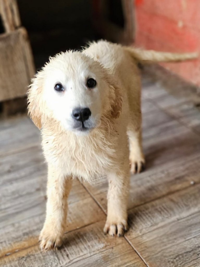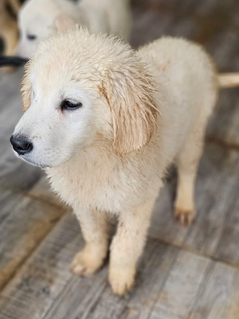 Nelly, ein Labbymix-Baby, wurde vor einer Kellertür geboren. Ihre Mama Ariella brachte dort sechs kleine Welpen zur Welt. Doch die kleine Familie konnte dort nicht bleiben, da die Bewohner des Hauses die Kellerräume nicht betreten durften. Tierschützerin Viki wurde um Hilfe gebeten und brachte die ganze Familie zunächst in die Tierklinik. Leider waren zwei der Welpen zu schwach und verstarben nach wenigen Tagen, was uns alle sehr traurig machte.