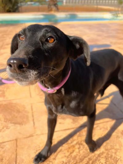 Nerida ist eine sanfte, junge Hündin, hat ein elegantes, kurzhaariges schwarzes Fell und eine sehr unkomplizierte Persönlichkeit. Die mittelgroße Nerida ist eher ruhig, sehr gut sozialisiert und hört prima auf ihre Bezugspersonen. Sie macht ihren Zwinger nie kaputt und wartet geduldig darauf, dass sie nach draußen darf, um ihre „Geschäfte“ zu erledigen. Obwohl sie zu Beginn etwas schüchtern gegenüber neuen Menschen sein kann, zeigt sie sich schon bald als sehr liebevolle und anhängliche Hündin. Sie ist so dankbar für jede Streicheleinheit und Aufmerksamkeit, die sie bekommt. Mit ihrem angenehmen Temperament und ihrer schnellen Auffassungsgabe ist Nerida die ideale Begleiterin für eine Familie, die ihr Zeit und Geduld schenkt, um das Vertrauen dieser tollen Hündin zu gewinnen.