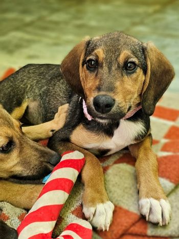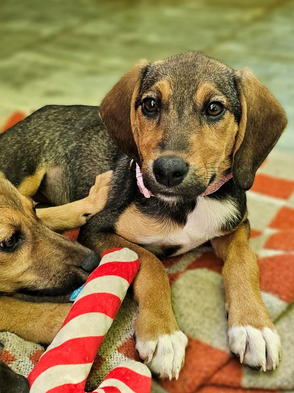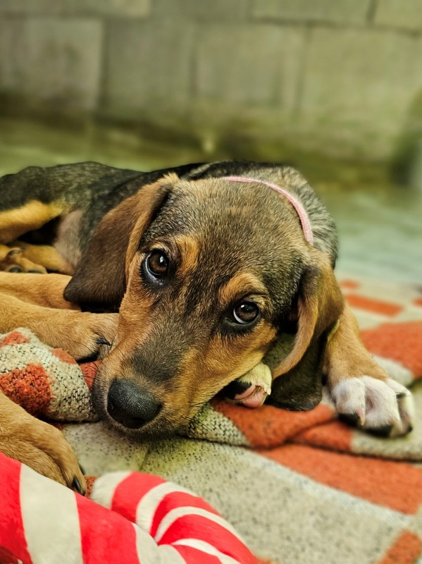 Nola, die kleinste der drei Schwestern, aber mindestens genauso verspielt und neugierig. Sie ist so verschmust mit den Menschen und spielt den ganzen Tag mit ihren Schwestern. Unsere Tierschützerin gewöhnt Nola an das Tragen von Halsband und Geschirr. Mehr kann die junge Hündin aber nicht. Deshalb suchen wir für Nola Adoptanten, die wissen wie viel Zeit und Geduld es benötigt einem jungen Hund die Welt zu zeigen, und das nicht nur einen Urlaub lang.....