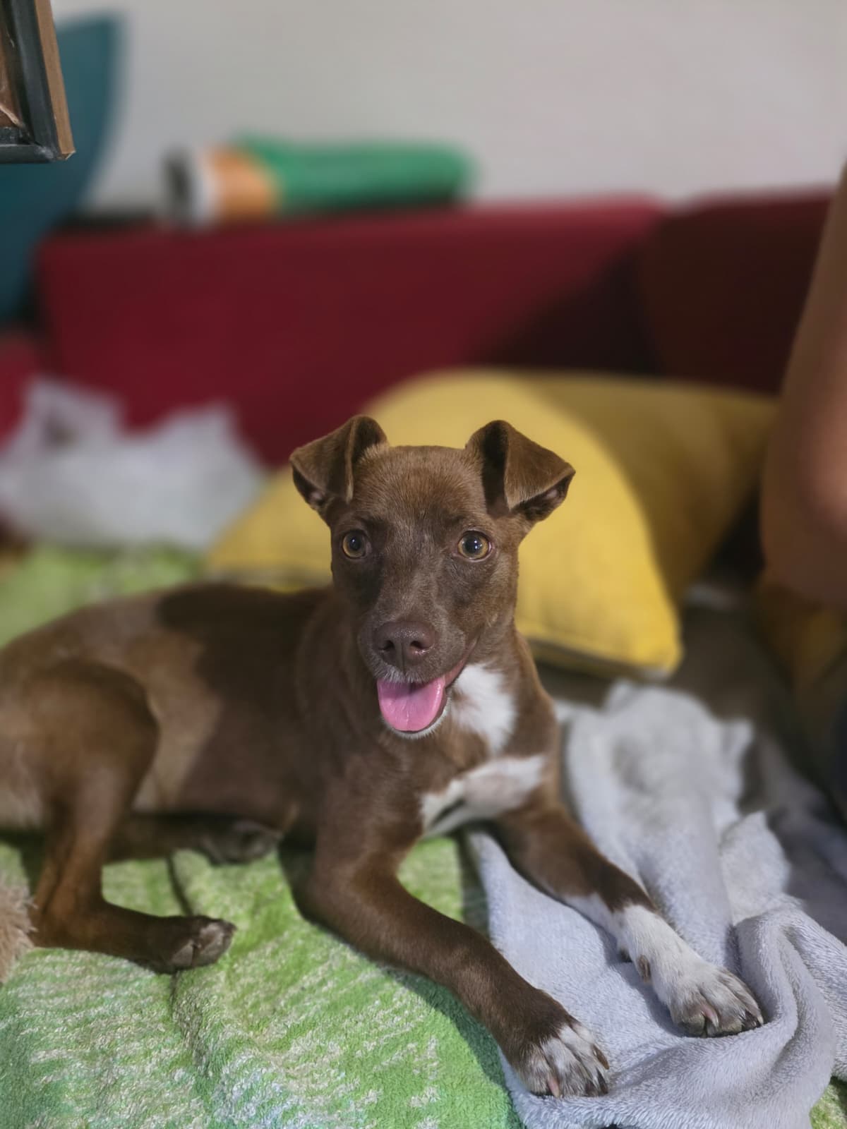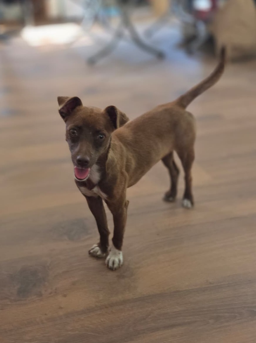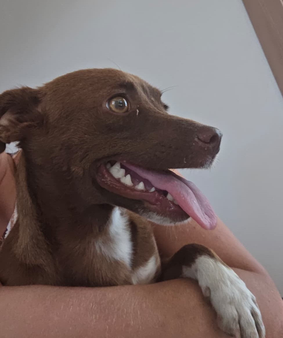 Sie mag andere Hunde, auch Katzen, ist ein wenig schreckhaft, aktiv, aber eben auch ein Kuschelhund.