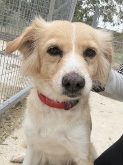 Ola ist eine junge Mischlingshündin, geboren im Januar 2023. Mit ihrem langen goldenen Fell, den weißen Abzeichen und ihren sanften, tiefen Augen ist sie eine echte Schönheit – freundlich, verspielt und voller Energie.