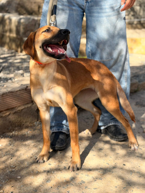 Die liebenswerte Orange wurde Ende Januar zusammen ihren drei Schwestern in einem Industriegebiet in der Nähe einer Baustelle gefunden. Trotz dieses schwierigen Starts ins Leben hat sie sich ihr großes Herz für Menschen bewahrt und zeigt sich heute als unglaublich menschenbezogene junge Hündin.