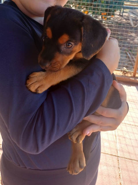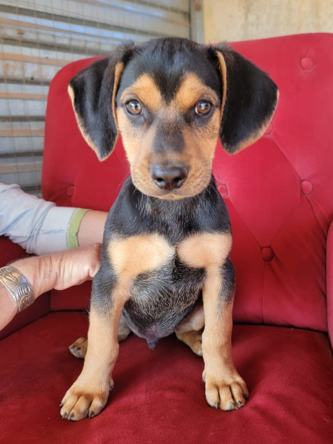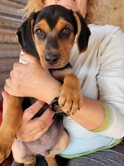Papa ist einer von den sechs Welpen, die bei der örtlichen Kirche ausgesetzt wurden. Das ist auch ein beliebter Ort, um seine Welpen einfach auszusetzen, in der Hoffnung, irgend jemand wird sich schon kümmern. Die Tierschützer haben sie gefunden und gerettet und nun sind sie bei Rita im Welpen-Kennel und dürfen einfach nur spielende kleine Welpen sein, denen es an nichts fehlt, außer demnächst ein eigenes Zuhause.