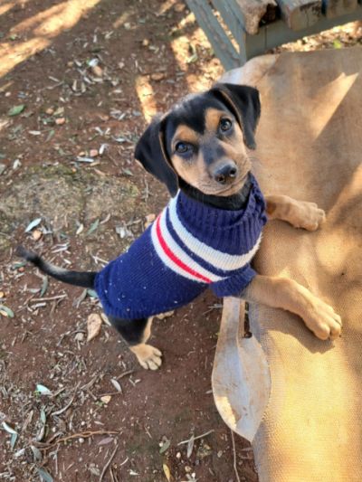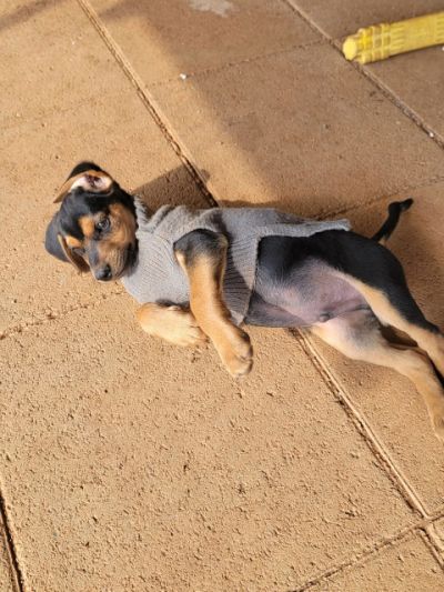 Papa ist ein sehr unabhängiger, neugieriger Welpe, der gerne neue Dinge lernt. Er liebt es im Garten auf Entdeckungstour zu gehen und mit seinen Geschwisterchen herumzurennen.