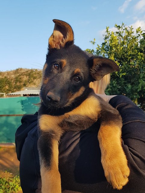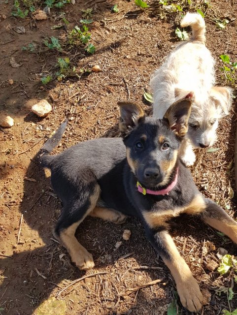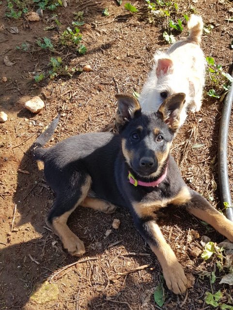 Rachel ist eine hübsche Schäfer-Mix-Welpin, die mal groß werden wird. Sie ist sehr entspannt, obwohl sie natürlich gerne mit ihrem Bruder Ross tobt. Rachel mag Menschen und möchte alles richtig machen. Sie wird eine sehr gelehrige Schülerin werden, wenn man sich mit ihr beschäftigt. Der Besuch einer Hundeschule wäre sicher eine Freude mit ihr und würde bestimmt auch Spass machen - eigentlich ist das mit so einem Hund auch schon fast ein Muss!
