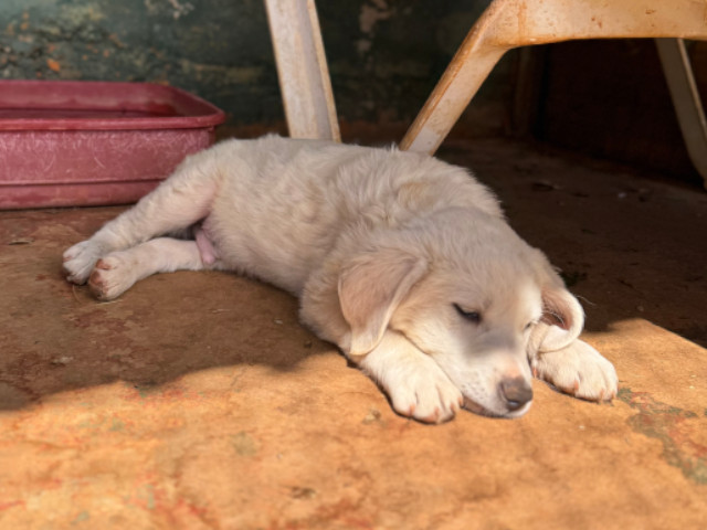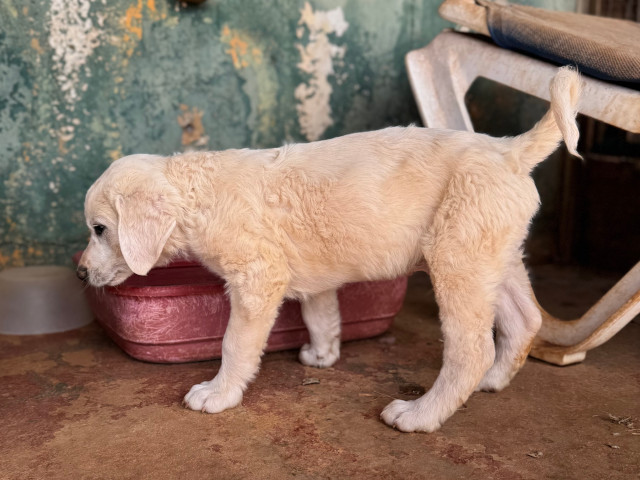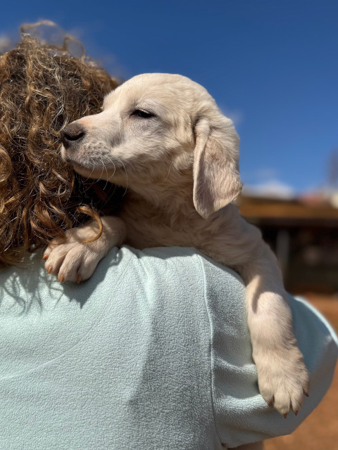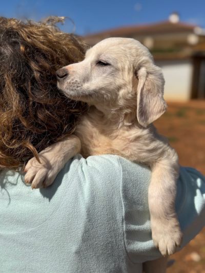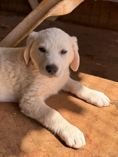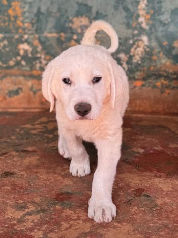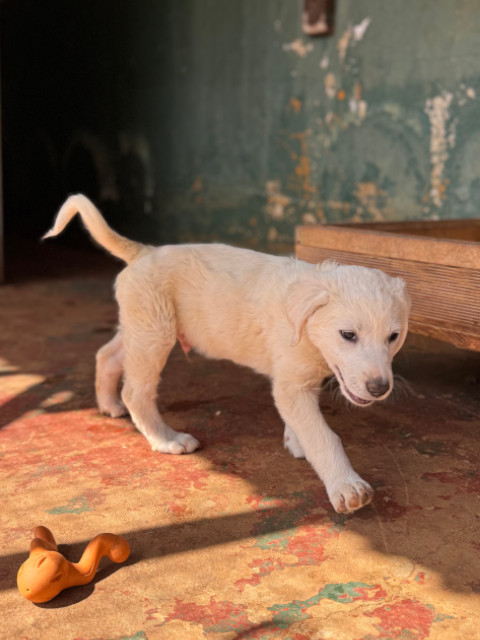 Ramon hat auch helles Fell, ist aber fluffiger als bei seinem Bruder Rusty. Ramon kennt nun einige "liebe" Menschen und hat Vertrauen gefasst. Seine Lieblingsbeschäftigung ist mit den Geschwistern über das Feld zu toben. Er lebt auch bei Rita im Welpen-Kennel und führt ein unbeschwertes Hunde-Kinder-Dasein, so wie es sein soll.