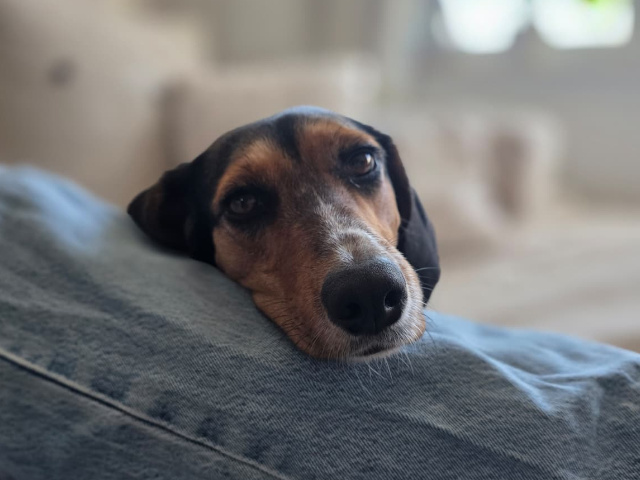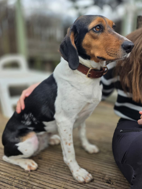Sandy ist eine sensible, vorsichtige und sehr anhängliche Hündin mit angenehm ruhigem Temperament. Sie orientiert sich stark an ihren Menschen und genießt jede Aufmerksamkeit, ohne jemals fordernd zu sein. Kuscheln gehört zu ihren liebsten Beschäftigungen. Im Haus bewegt sie sich noch vorsichtig, aber neugierig. Eine Sofaecke hat sie zu ihrem Safeplace erklärt – Rückzugsort, Beobachtungsposten und Schlafplatz in einem. Routinen geben ihr Sicherheit und helfen ihr, immer mehr Vertrauen zu fassen. In neuen oder stressigen Situationen erstarrt sie aus Unsicherheit und duckt sich, bleibt dabei jedoch stets freundlich. Mit Geduld, liebevollem Zureden und etwas Freiraum lässt sie sich gut durch solche Momente begleiten. Hat sie Vertrauen gefasst, taut sie spürbar auf. Mit dem Rüden der Pflegestelle versteht sie sich sehr gut – ein souveräner Ersthund könnte ihr Sicherheit geben. Sie ist stubenrein, läuft Treppen selbstständig und ist gut über Futter motivierbar. Mit ruhigen, älteren Kindern zeigt sie sich einfühlsam. Draußen ist sie an der Straße noch unsicher, im Wald hingegen fühlt sie sich deutlich wohler und schnuppert ausgiebig. Rassebedingt bringt sie Jagdtrieb mit.
