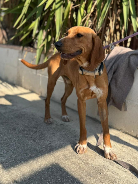 Scooby-Doo ist ein etwa 9 Monate alter, mittelgroßer Rüde mit einem wunderschönen rot-braunen Kurzhaarfell. Er sprüht nur so vor Energie und Lebensfreude – typisch Junghund! Besonders liebt er es, mit seinen Spielzeugen und seinem Bruder Nero zu toben. Er ist menschenbezogen, freundlich zu Zwei- und Vierbeinern und zeigt sich im Umgang mit anderen Hunden sozial und aufgeschlossen. Er geht bereits täglich spazieren, läuft gut an der Leine und lernt fleißig Grundkommandos – auch wenn ihm seine überschäumende Begeisterung manchmal noch im Weg steht.