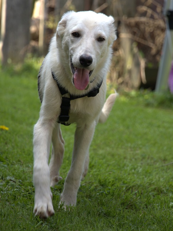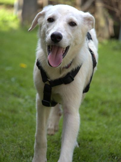 Sie ist schon eine noch zurückhaltende, aber nicht panische Hündin, die bei den richtigen Menschen für den Alltag eine gute Begleiterin werden könnte.