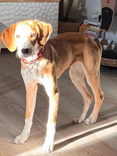 Junghündin Rosi (ehemals Sofie) sucht ein liebevolles, erfahrenes Zuhause ohne kleine Kinder. Im Oktober kam sie in ihrem Zuhause an, wo man sich liebevoll um sie kümmerte. Sie ist eine fröhliche, menschenbezogene und verschmuste Hündin, die Spaziergänge, Joggen, Spielen und gemeinsames Kuscheln sehr genießt. Mit souveränen Hunden versteht sie sich gut, und auch mit klar auftretenden Katzen kann sie zusammenleben. Rosi ist stubenrein, dabei sind feste Zeiten für sie wichtig.