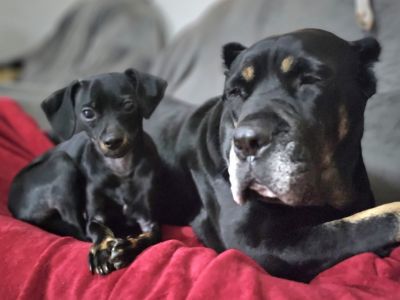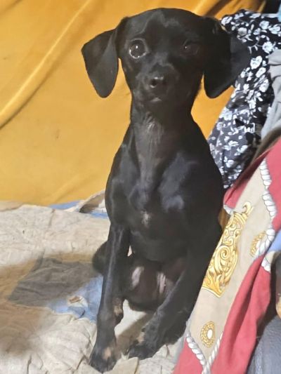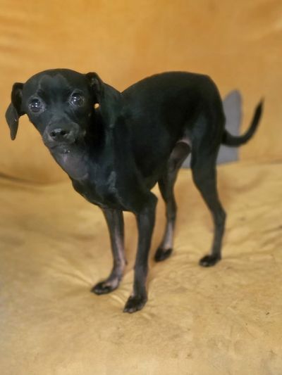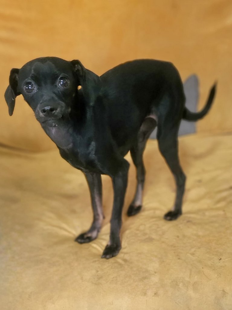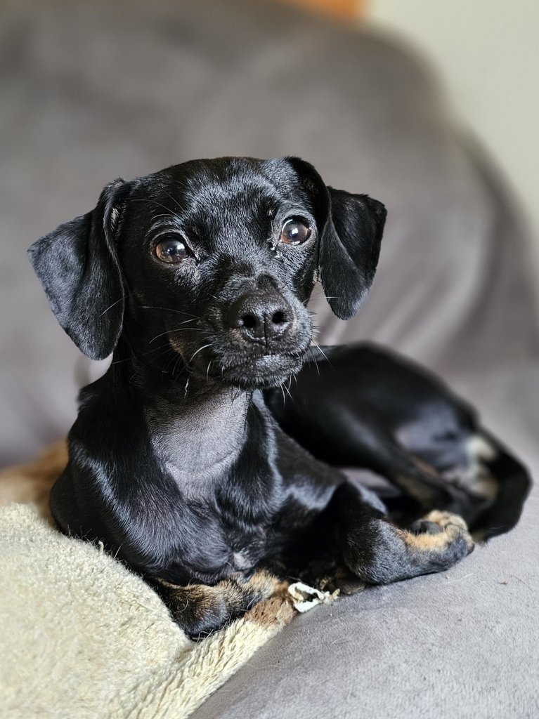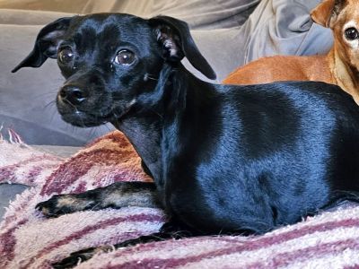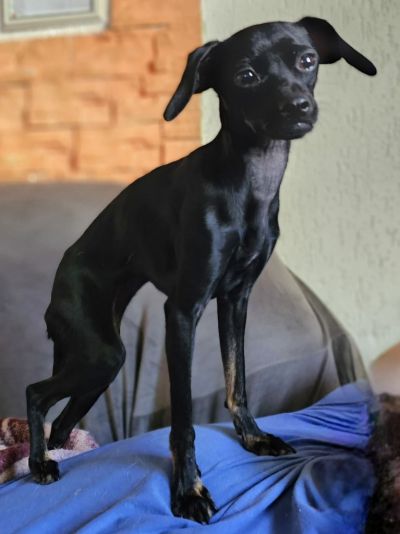 Suzi ist eine verspielte junge Pinschermix-Hündin. Sie ist eine außergewöhnlich elegante und langbeinigere Erscheinung. Mit ihren großen, ausdrucksvollen Augen verschlingt sie alles Neue. Sie ist sehr verspielt, liebt es zu rennen und zu toben und die Umgebung zu erkunden.