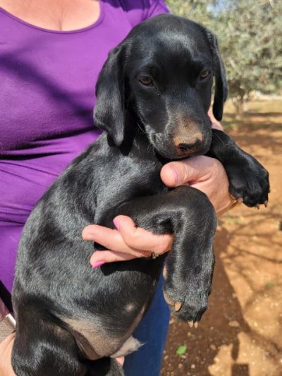 Themis ist ein neugieriger Welpe, der Menschen kennt und Vertrauen hat. Er tobt sehr gerne mit den anderen Welpen über das Feld. Themis wird sicher mittelgroß und somit kann man viel mit ihm unternehmen. In der Hundeschule kann man herausfinden, was ihm liegt und dies dann fördern.