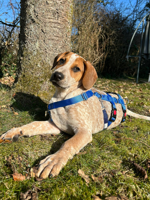 Typisch Welpe muss er das Hunde-1x1 noch lernen, insbesondere im Haus zur Ruhe zu kommen. Hier braucht er noch liebevolle Unterstützung und klare Orientierung.