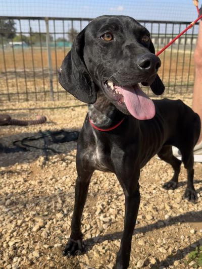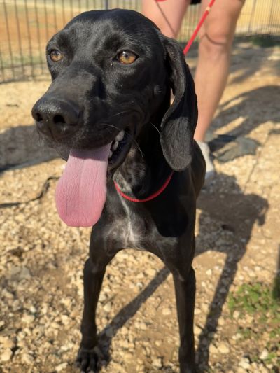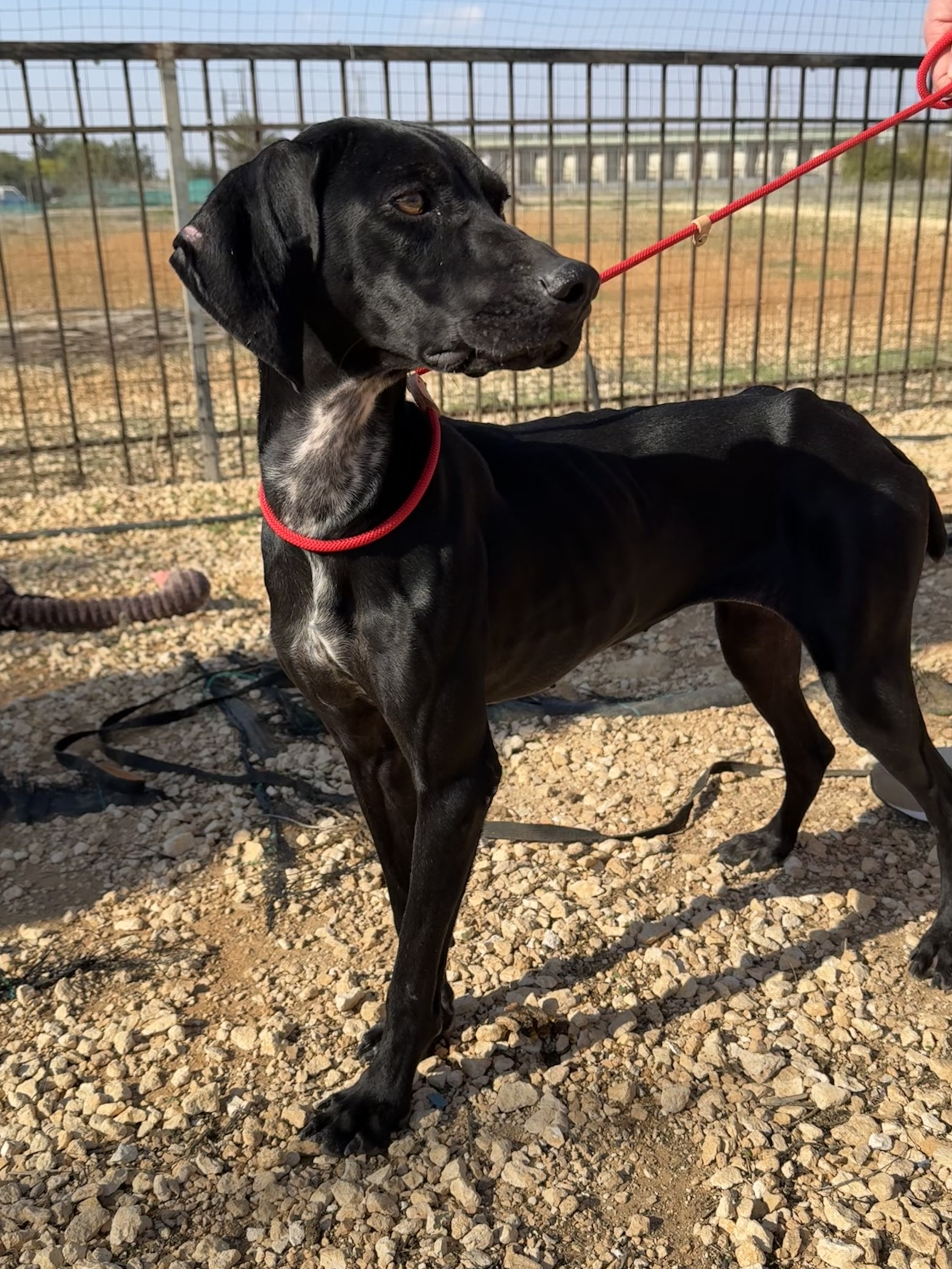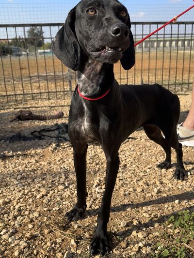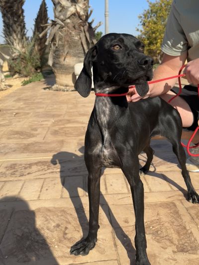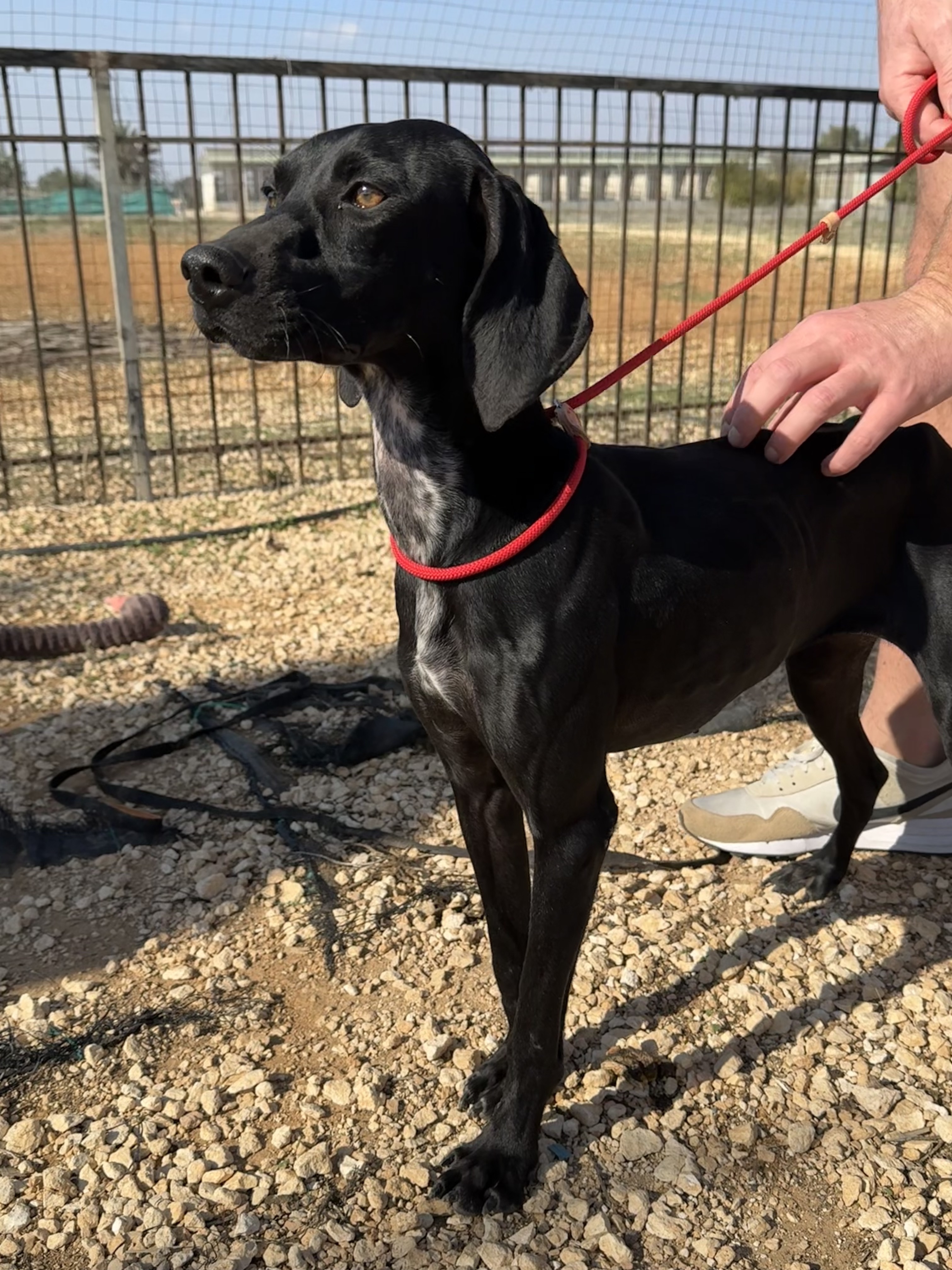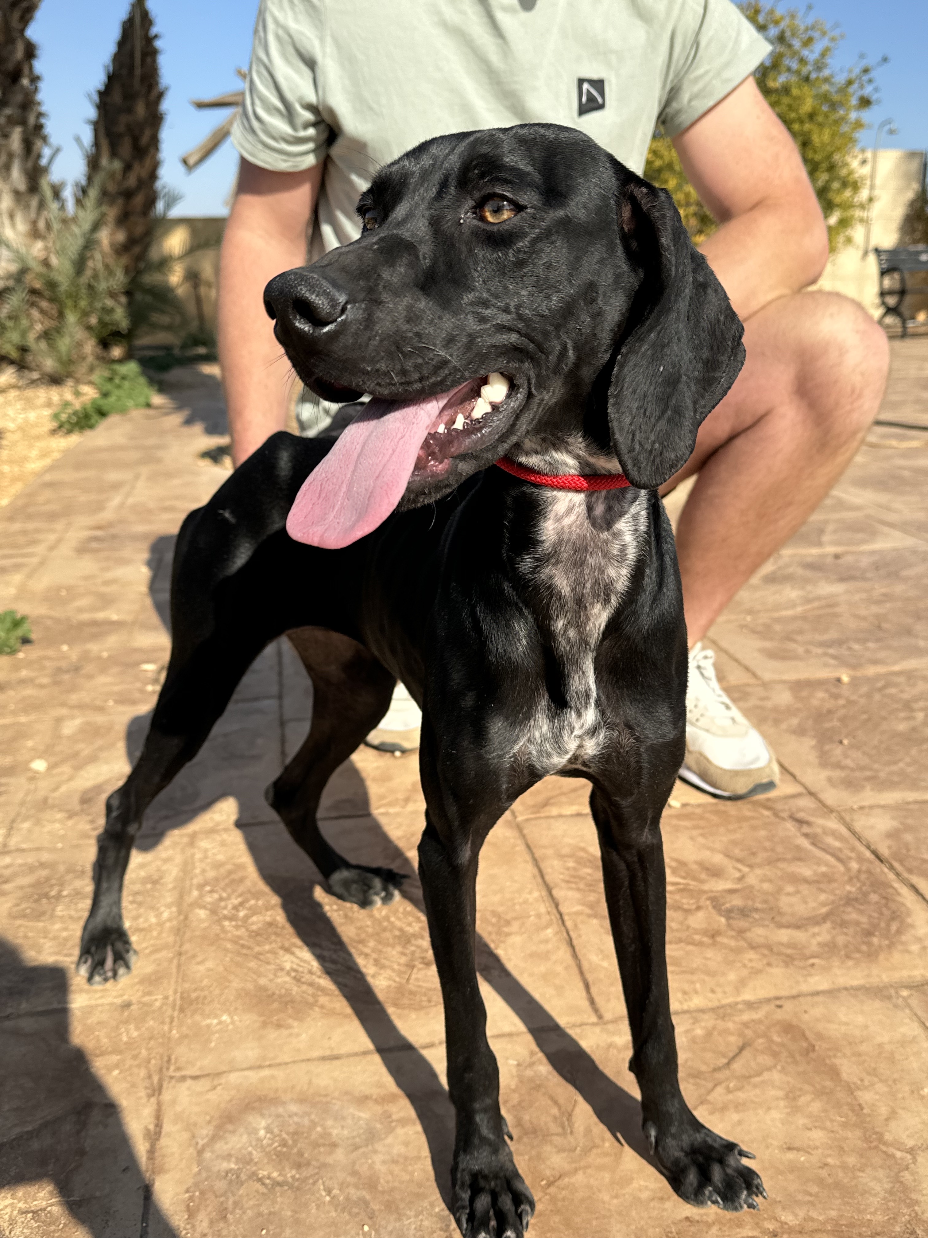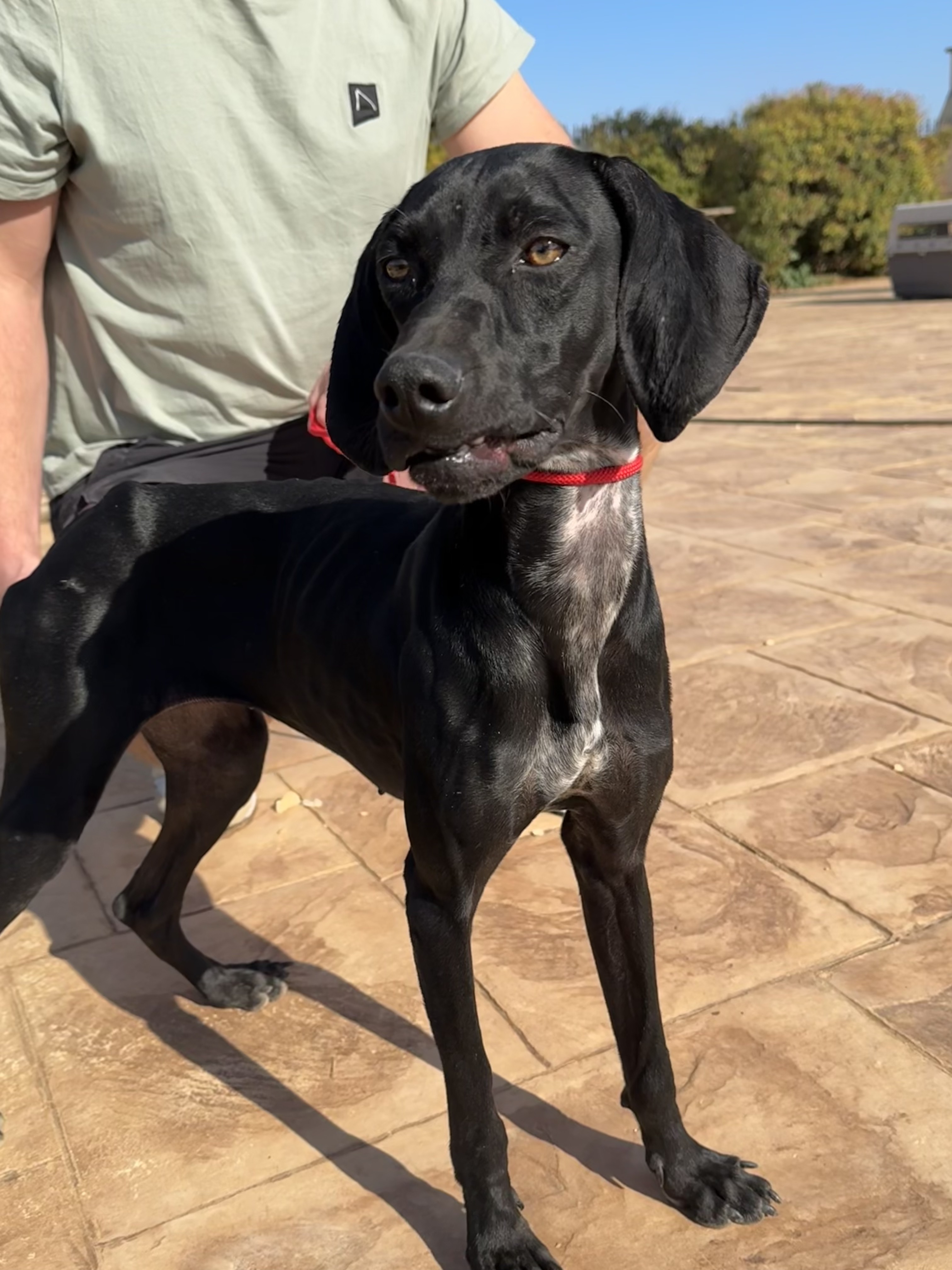 Die entzückende Zoe ist ein Pointer-Mix mit einem strahlend schwarzen Fell und einer eleganten Statur. Mit einer Schulterhöhe von 48 cm ist sie gerade mal eine mittelgroße Hündin mit einer zierlichen Statur. Zoe hat eine sehr süße Ausstrahlung, mit langen Schlappohren und treuen Augen - wir sind sicher, dass sie die Herzen ihrer Menschen im Sturm erobern wird.