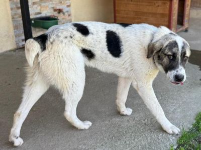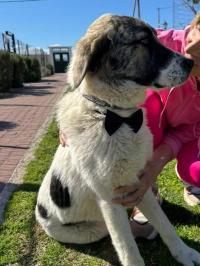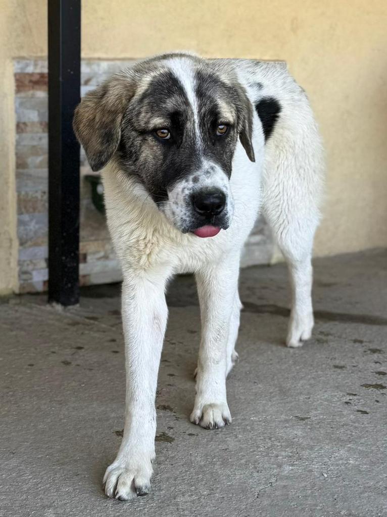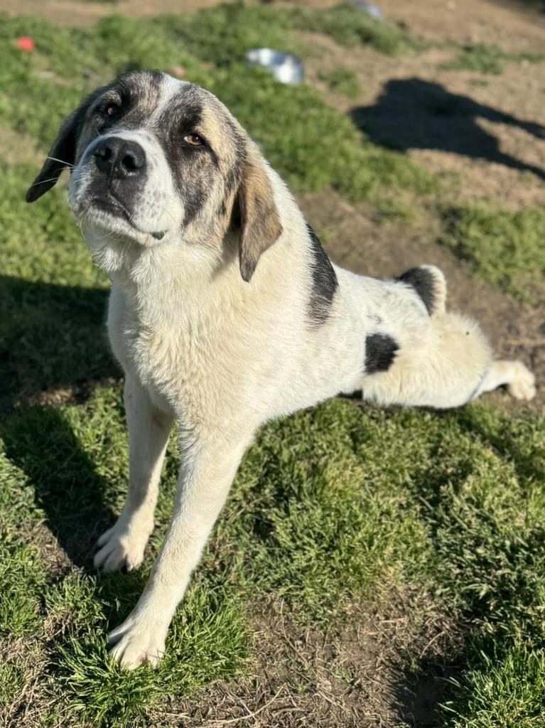 Er wurde mit einer halben Rute geboren. Sein Erscheinungsbild lässt auf griechische Schäferhund- bzw. Herdenschutzhund-Gene schließen. Welche rassetypischen Eigenschaften sich weiter entwickeln, lässt sich nicht sicher vorhersagen – Erfahrung mit großen, selbstständigen Hunden ist daher ausdrücklich erwünscht.
