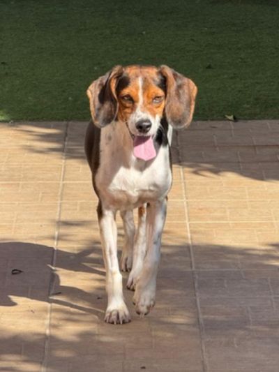 Der wunderschöne Rüde ist mittelgroß, hat glänzendes, dreifarbiges Fell und eine Schulterhöhe von 43 cm – auf Fotos wirkt er oft größer, als er tatsächlich ist. Anfangs war Zephyr etwas schüchtern und unsicher, doch mit Geduld und Zuwendung hat er sich zu einem selbstbewussten und fröhlichen Hund entwickelt. Heute zeigt er sich als treuer Begleiter, der seinen Menschen gerne folgt. Zephyr hat ein angenehmes, ausgeglichenes Temperament. Er ist anhänglich, liebevoll und genießt Aufmerksamkeit in vollen Zügen – dabei bleibt er stets sanft und unaufdringlich. Nachts schläft er brav in seiner Box – ein echtes Vorbild! Außerdem ist er kontaktfreudig und verträglich mit Artgenossen.