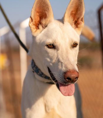Zypern: Pinky ist ein wunderschöner weißer Mischlingsrüde mit einem lebendigen, extrem freundliche…