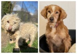 Wenn ein Pudelmix nicht gebürstet und gepflegt wird, wird er mit der Zeit so aussehen wie das kleine Kerlchen links im Bild.