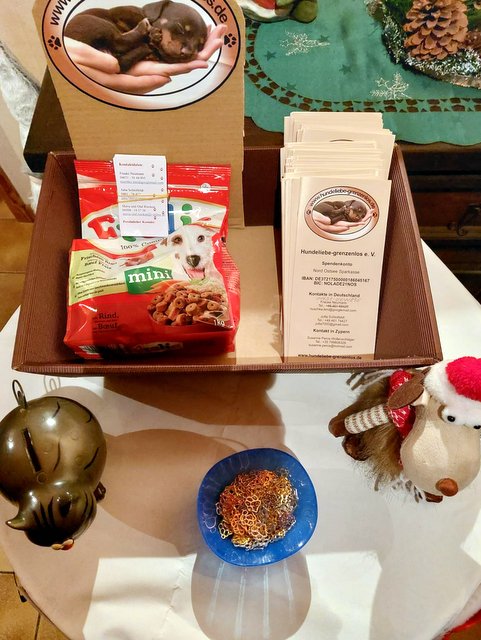 Davon sollen 500,- Euro an Susi in Zypern gehen. Leider können wir dzu ihr keine Sachspenden hinschicken, davon soll Susi das kaufen, was sie dringend benötigen.