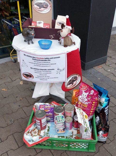 Auch hier sind Futterspenden, Sachspenden und Geldspenden zusammen gekommen.