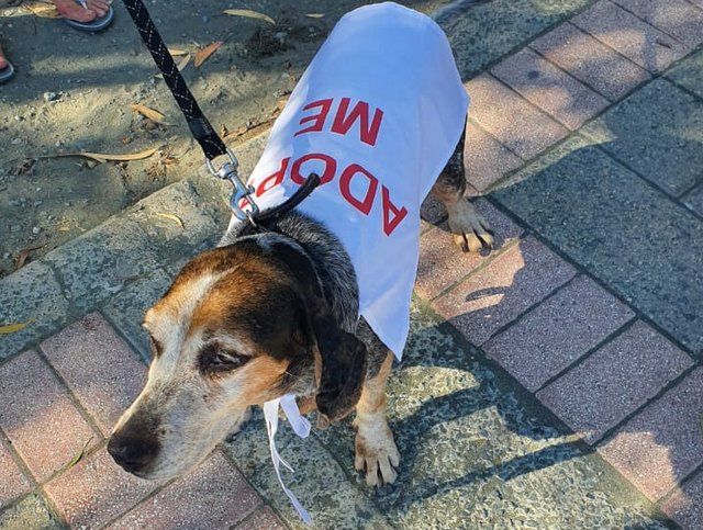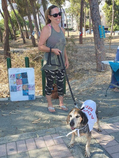 Wir waren im Eukalyptuspark neben dem Strand. Es war fantastisch. Die Leute freuten sich die Hunde zu sehen und kauften Dinge ein, um unserem Tierheim zu helfen ... Wir hatten Interessenten für einen unserer Hunde und wir hoffen, dass sie adoptiert wird.