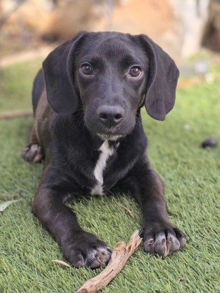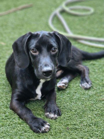 Axel ist ein bezaubernder kleiner Rüde – eine Mischung aus Dackel und Labrador.