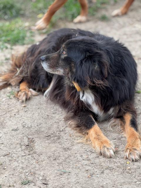 Gefunden wurde er abgemagert, mit trockenem Fell und einem Kabel um den Hals, einfach auf der Straße liegend. Seine Beinverletzung war alt – doch sein Herz ist heil geblieben.