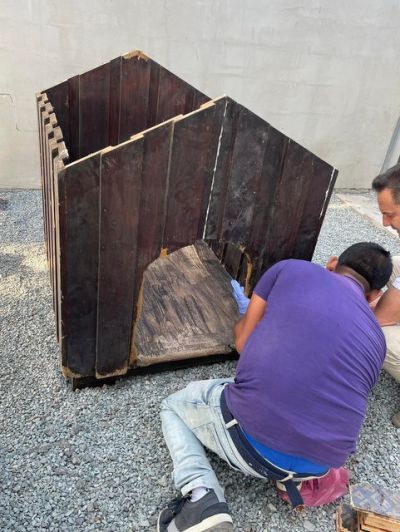 Auf den Fotos sieht man wie Antonius und ein anderer Mann Hütten bauen, denn das Wetter wird schlechter.