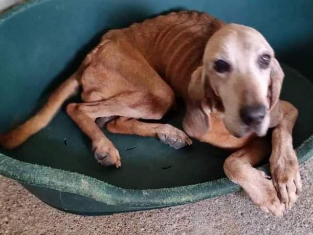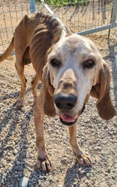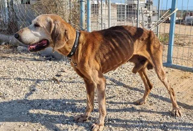 Dieser alte Hund hat mit Sicherheit noch nie ein schönes Zuhause mit viel Liebe, ausreichend Futter und Wasser und einem gemütlichen Schlafplatz gehabt.