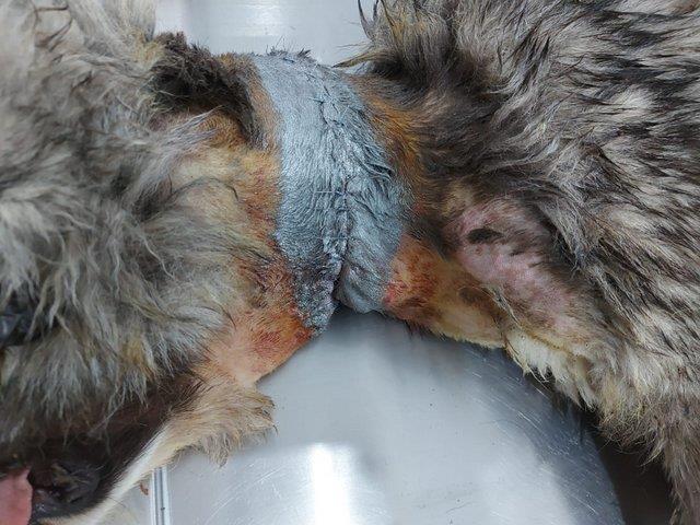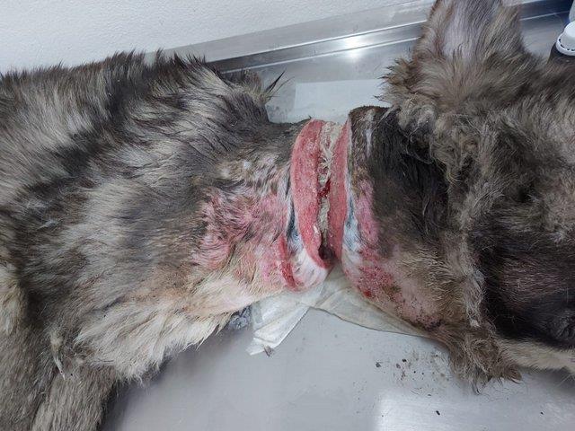 Die Kette und das Tau mussten in Vollnarkose vom Hals entfernt werden.