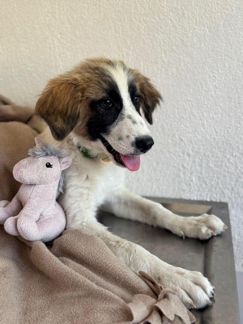 Ihre Eltern sind Herdenschutzhund-Mixe – das sind oft besonders treue, ruhige Wegbegleiter, die gar nicht viel fordern, sondern einfach bei ihrer Familie sein wollen. 🐾