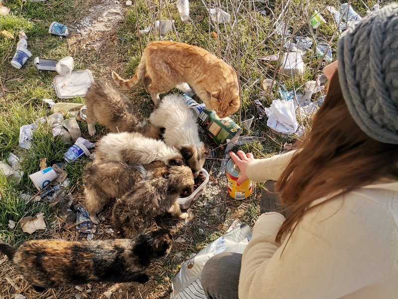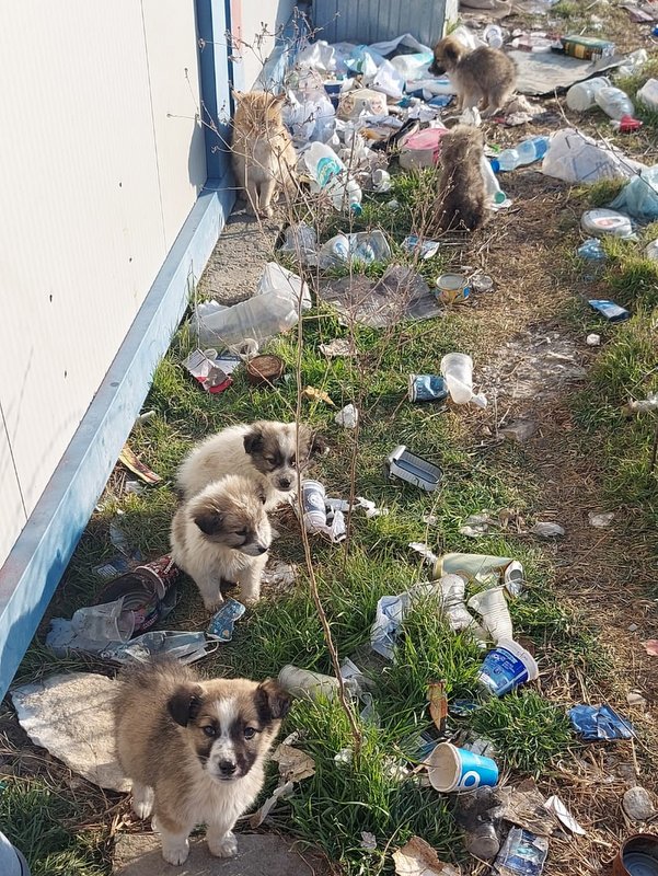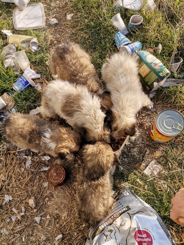 Diese Bilder sind entstanden durch unseren Nordmazedonien-Transport, der an der Grenze immer länger warten muss und somit haben Viki und Aleksandar Zeit die Tiere wenigstens zu füttern. Doch auch das ist mit Problemen behaftet, denn die Großen nehmen den Kleinen alles weg und atackieren die Welpen.
