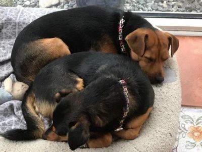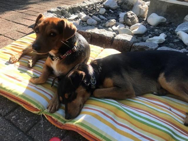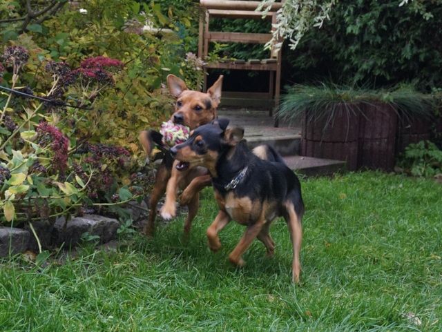 Tom und Jerry können auch schonn alleine bleiben, was oft bei Einzelhunden schwierig sein kann und ein gewisses Training voraussetzt.