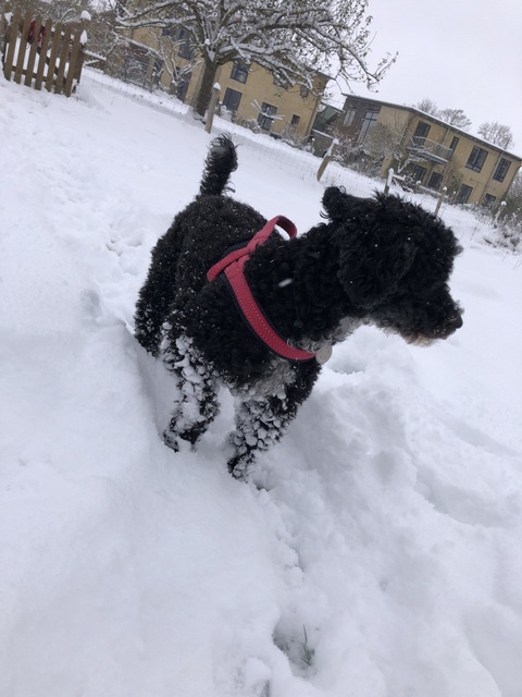 Bei uns in OWL gibt es nur sehr selten Schnee. Wenn es mal ein paar Flocken gibt, findet Wilma es aber sehr schön.
