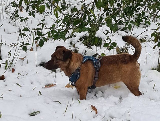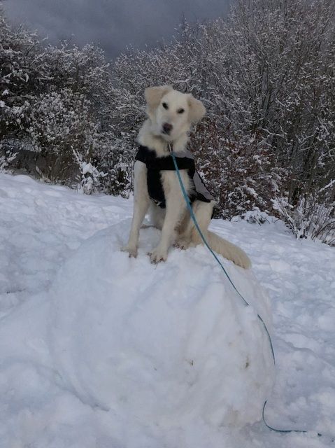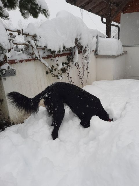 Grüße schickt auch Stina ex Puffy aus Nordmazedonien. Wie man sieht, geht es ihr gut und der Schnee scheint ihr auch nichts auszumachen - wie schön :- ) Alles Gute auch für euch!
