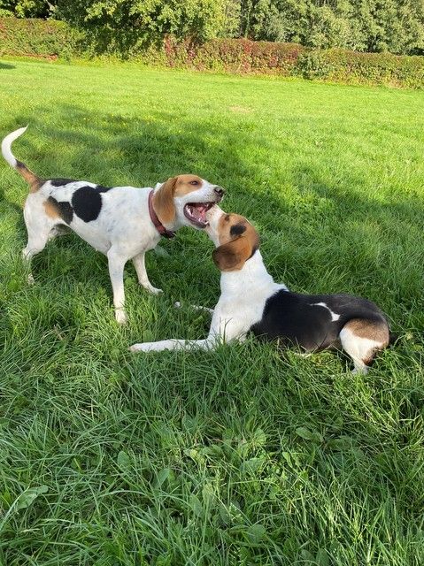 Die beiden Frauchen sind befreundet, die beiden Hunde auch und wir gehen oft zusammen in Tating spazieren.