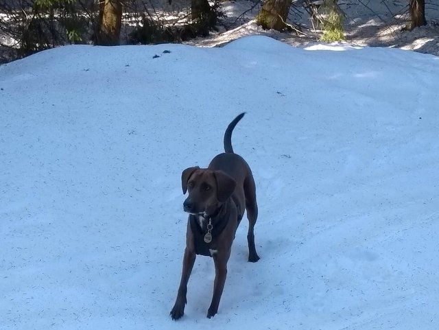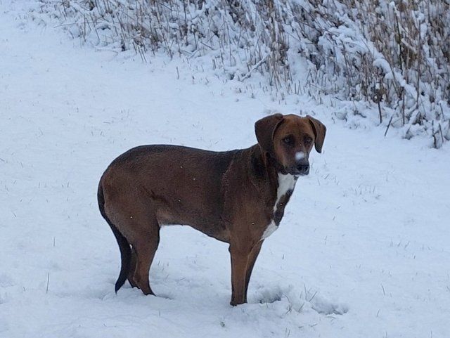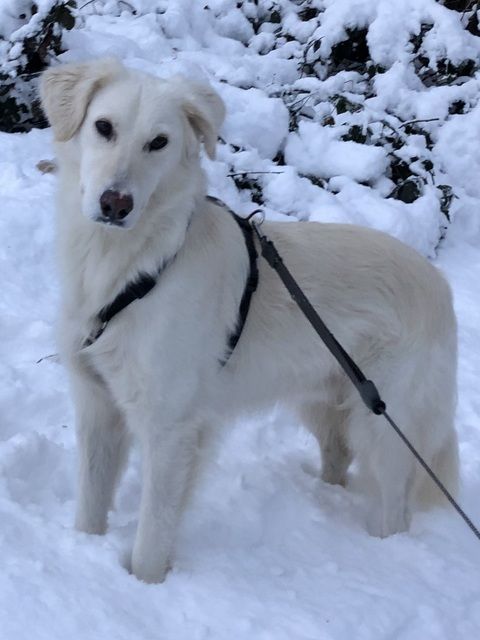 Prima kommt aus Rumänien - und mag den hohen Schnee nicht so gerne - bleiben doch immer diese lästigen Schneeklumpen im Fell hängen und werden auch noch immer größer.